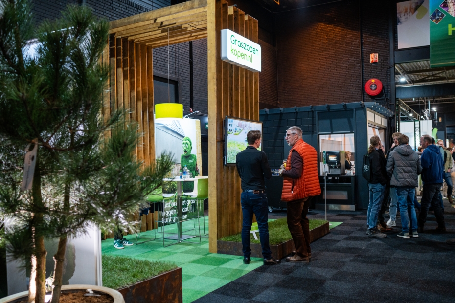 Marcel Lageman van Graszodenkopen.nl: 'We staan hier voor meer naamsbekendheid en om onze aanleg te promoten bij hoveniers . Hebben zij het te druk of kampen ze met capaciteitsproblemen, dan kunnen ze hun projecten aan ons uitbesteden om hen te ontzien.'