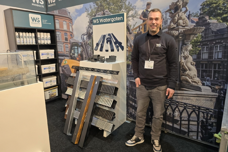 Frank van Leeuwen van WS products met de introductie van de WS watergoten. Een goed product voor scherpe prijs. Uitgebreid assortiment met een eigen ontwerp van het rooster.