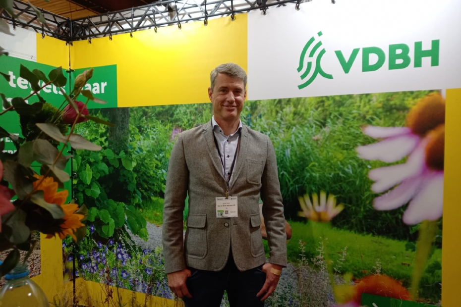 VDBH, Emile Penn: 'We staan hier als een breed bedrijf voor de inrichting van de buitenruimte. Zeg maar een hele grote hovenier. Onze speerpunten: halfverhardingen en biodiversiteit. We willen de natuurlijke omgeving verruimen.'