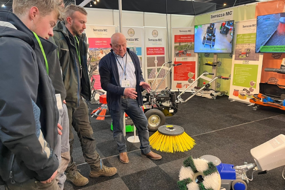 Bij Terrazza MC geen echte noviteiten dit jaar, maar accountmanager Patrick Gernaey laat bezoekers zien hoe je met zo min mogelijk slijtage terrassen en opritten als nieuw kan opleveren.