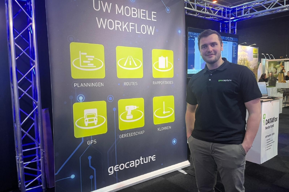 Jasper Weenk van geoCapture draaide zijn eerste beurs. Het Duitse softwarebedrijf staat er zelf al voor de derde keer. Heeft verregaande inzichten op het gebied van routeplanning, gereedschapbeheer, personeelstijdregistratie, planningen, rapportages en GPS.