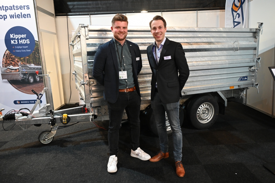 Saris is eind 2024 overgenomen door een Poolse partij. Vorig jaar nam het Nederlandse aanhangwagenbedrijf nog een deel van de failliete boedel van het Oostenrijkse Pongratz over. Uit die overname zijn ook enkele innovaties voortgekomen. Hier poseren Tim den Breejen en Jan Rooij bijvoorbeeld bij de nieuwe Kipper K3 HDS: een heavy-duty driezijdige kipper die volledig uit staal bestaat. Nederlandse aanhangwagens hebben doorgaans houten vloeren en aluminium wanden, maar dit stalen model is werkelijk hufterproof.