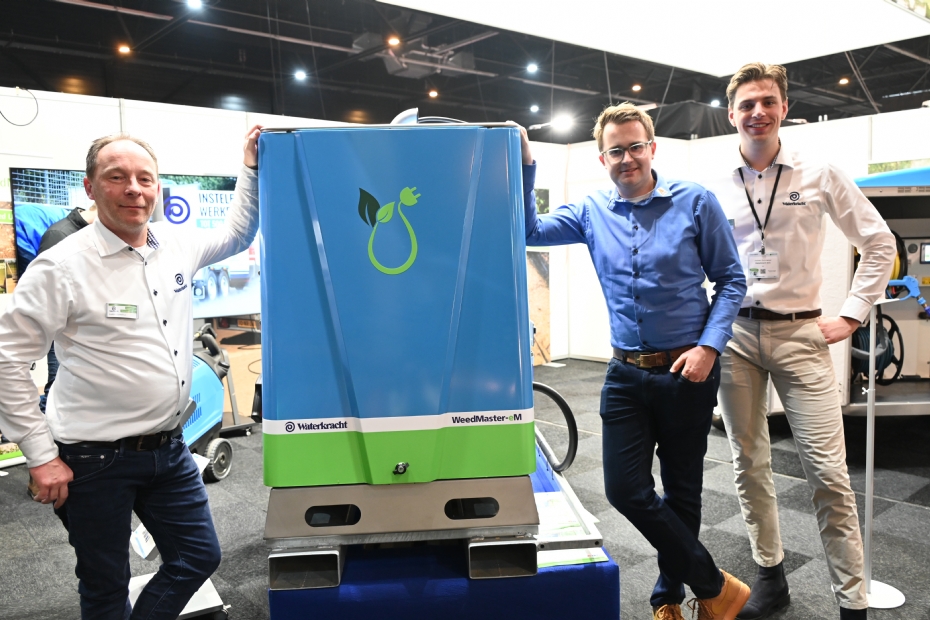 Justin Cornelius en Jochem Schmaloer van Waterkracht en Lars Knoop van dealer Almat Laren in de spotlight bij de Weedmaster-eM. De drie heren beamen dat het lastiger is geworden door veranderende CROW beeldsystematiek om nieuwe gebruikers te vinden voor hun heetwateronkruidmachines. Maar er aan de andere kant weinig last van hebben omdat er al een hele schare trouwe gebruikers zijn van de methode en techniek. Het aantal verkochte machines lag in 2024 dan ook nog op een goed niveau. 'Er zijn gewoon nog altijd veel gebruikers die geloven in ons product en de werking ervan.'