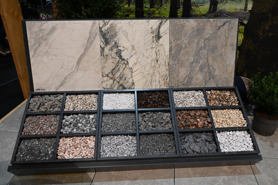 | | Op de stand van Michel Oprey waren verder ook nog diverse kleuren split te vinden mooi gecombineerd met keramische tegels. |