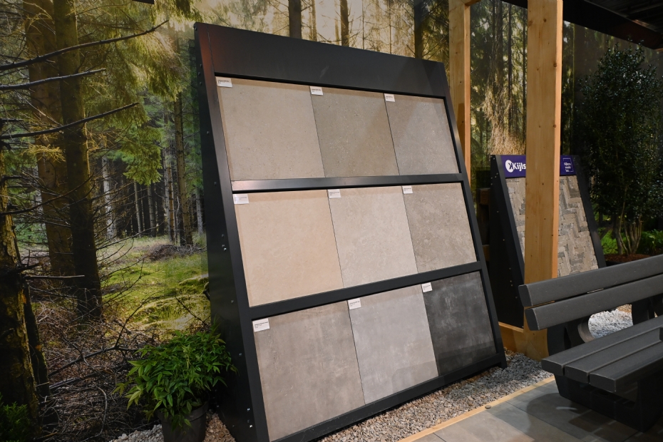 Op de gezamelijke stand van Michel Oprey, betonproducent Kijlstra en Stabu tijdens De Groene Sector Vakbeurs waren meerdere nieuwe dingen te bewonderen. Waar het oog van de redactie voornamelijk op viel was de nieuwe lijn van SolidSquare, een nieuwe budgetlijn van keramische tegels.