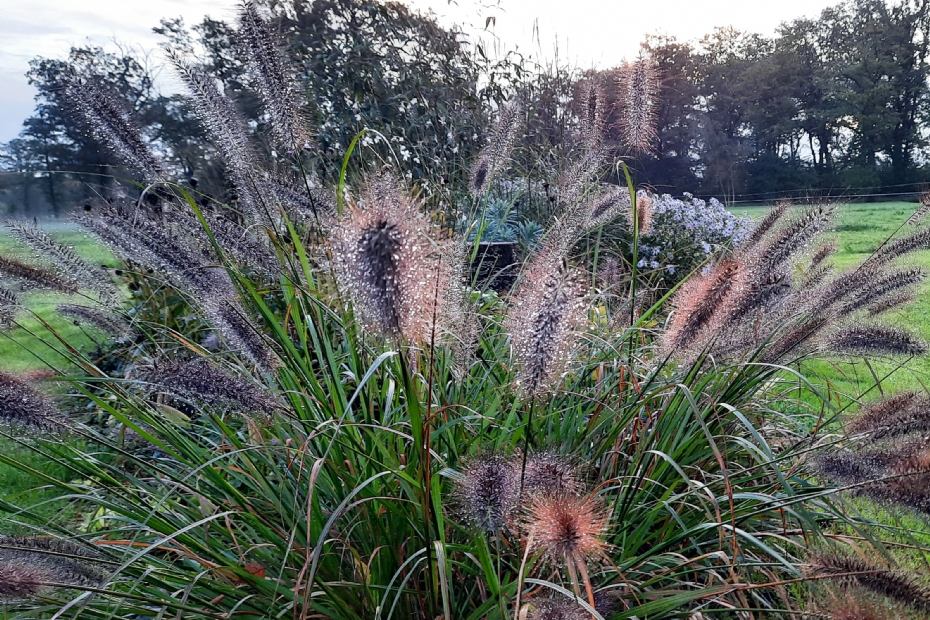 Met talrijke opvallende donkere bloeiaren, waaraan dauwdruppels prachtig blijven fonkelen, is Pennisetum alopecuroides 'Red Head' een veelzijdige toevoeging aan het volledig biologisch gekweekte assortiment van Lageschaar.