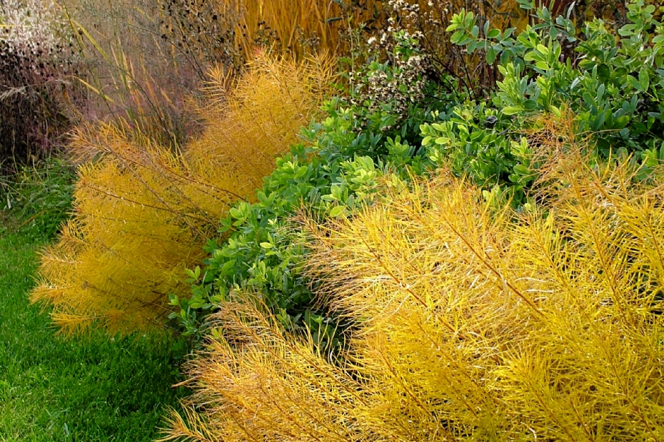 Amsonia hubrichtii, de blauwe ster met sierlijk naaldvormig blad en een mooie losse groeiwijze, kent ook nog eens een spectaculaire bladverkleuring: van frisgroen in de zomer naar intens geel in het najaar en een prachtige kopertint in het begin van de winter.