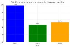 TuinKeur komt met een concreet advies. 'Wij komen uit op 5,3 procent', zegt Westra. 'Maar het is slim om tussentijds nog eens te kijken. In juli gaan we kijken of we nog goed zitten. We adviseren ondernemers om voorbereid te zijn op nieuwe ontwikkelingen.' Koninklijke VHG verwijst naar het sectoraal prijsindexcijfer dat zij samen met het Centraal Bureau voor de Statistiek (CBS) hebben ontwikkeld. Sinds 2024 wordt dat zo'n zes weken na afloop van ieder kwartaal door het CBS gepubliceerd. Het meest recente cijfer dateert van het einde van het derde kwartaal in 2024. Dat cijfer bedroeg 5,6 procent. Maaskant benadrukt hierbij dat prijsindexcijfers vooral als indicatie moeten worden beschouwd. 'Indexcijfers zijn veelal gebaseerd op ontwikkelingen in het verleden. We adviseren daarom altijd om de eventuele toekomstige ontwikkeling van de eigen bedrijfskosten mee te nemen in het vaststellen van de tarieven.'
