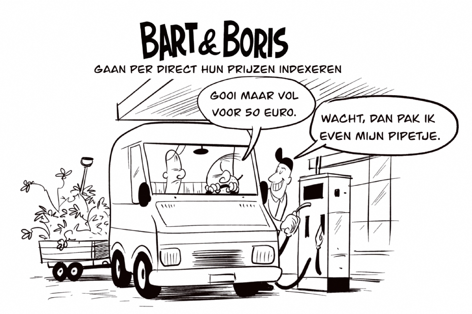 'We hebben in Nederland allemaal te maken met duurder brood, duurdere pindakaas en duurdere diesel', reageert Westra gevat. 'Alle kosten stijgen, dus ook de kosten van de hovenier.' De kosten van ondernemen stijgen, benadrukt Maaskant. 'Het prijsindexcijfer gaat over arbeidskosten, sociale lasten en overige bedrijfskosten. Denk dan bijvoorbeeld aan de autokosten, huisvestings- en energiekosten', zo legt hij uit.