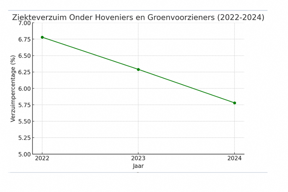 | Verzuimcijfers onder hoveniers en groenvoorzieners van 2022, 2023 en 2024. |