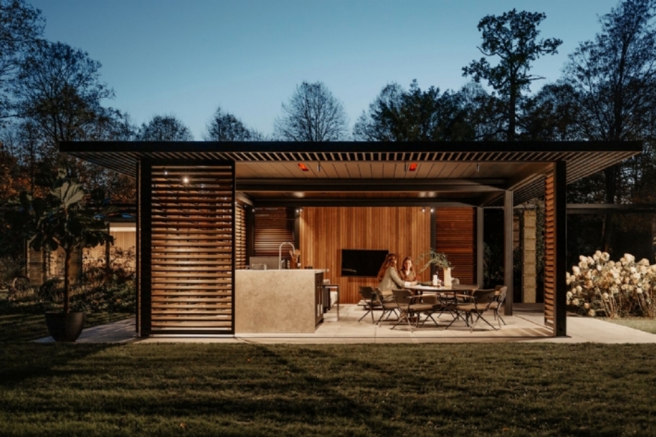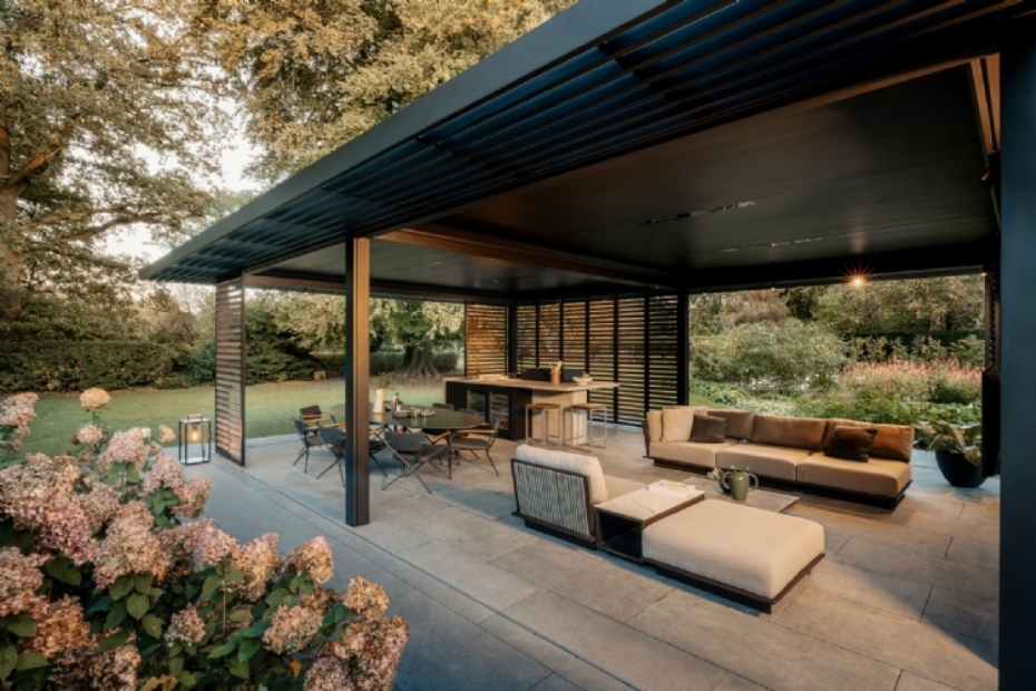 Op een landgoed in het midden van Nederland is recent een luxe buitenleefruimte gerealiseerd als uitbreiding van een bestaand landhuis. De maatwerkconstructie bestaat uit een overkapping in twee zones, ontworpen en uitgevoerd door Veraluxe Luxury Outdoor, Premium Renson Ambassador. Het project is de eerste plaatsing van het nieuwe Amani-model van Renson in Nederland.