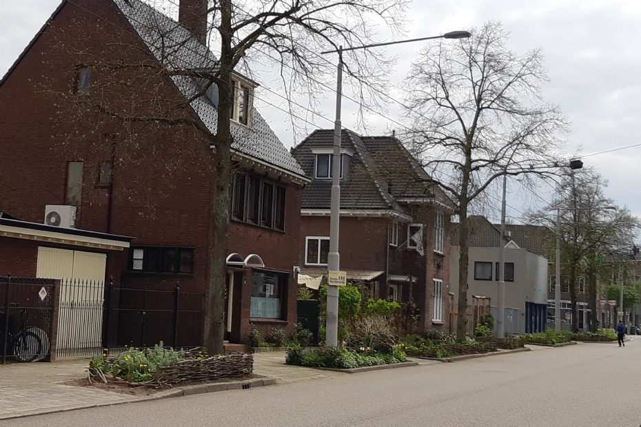 | Beeld ter illustratie: Grote plantvakken met wilgenvlechtwerk (gemeente Arnhem samen met buurtbewoners) |
