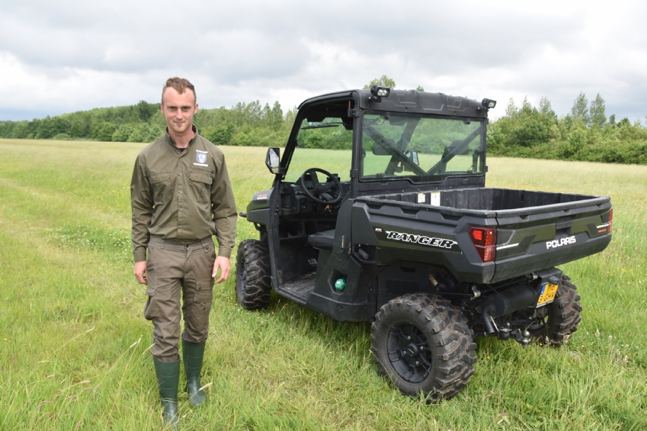 Terug bij de werktuigenloods verwelkomt toezichthouder Jeroen van Eijk ons. Hem vraag ik waarom gekozen is voor deze Polaris Ranger met dieselmotor en niet weer voor een elektrisch aangedreven Polaris. Hij antwoordt: 'We hebben circa drie jaar met zo'n accuaangedreven versie gewerkt. Waarschijnlijk was dat één van de eerste accu-aangedreven Polarissen in ons land. Hij deed wat hij moest doen, maar onze ervaring was dat de accu's te snel leeg raakten. We gebruikten hem dan ook bijna de hele dag. Bij intensief werk waren de accu's soms al voor de middagpauze bijna leeg. En dan moest hij een groot deel van de dag weer aan de oplader. De keuze voor een Polaris-diesel was, gezien de plezierige ervaringen, snel gemaakt. Quadwinkel uit Barneveld heeft hem geleverd. Dat was een kwestie van het raadplegen van internet waar voor ons de dichtstbijzijnde Polaris-dealer zit. Dat bleek Quadwinkel in Barneveld, op circa drie kwartier rijden van ons af. Dit bleek meteen de goede keuze: bij deze dealer hebben ze goed meegedacht om onze wensen in te vullen. En mocht ongepland onderhoud nodig zijn en als blijkt dat dit niet op locatie mogelijk is, dan vormt halen en/of brengen voor beide partijen, gezien de afstand, geen groot probleem.'
