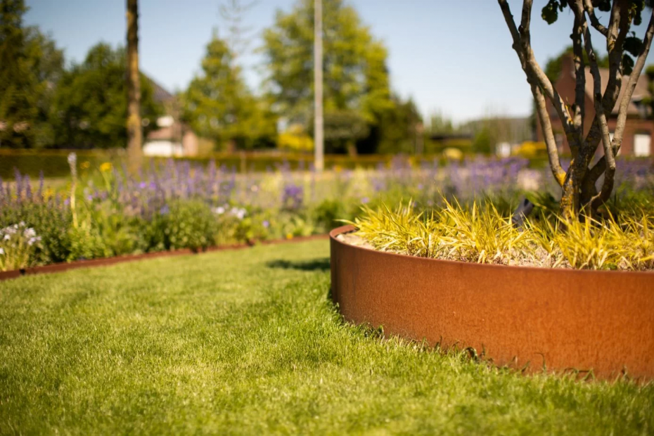 Stalen kantopsluitingen zijn al jaren een vaste waarde in het tuinontwerp. Met dit buigzame materiaal kunnen organische vormen worden gecreëerd, terwijl de roestkleurige uitstraling van cortenstaal bijdraagt aan een natuurlijke look, alsof het materiaal al jarenlang is blootgesteld aan weer en wind. Die verweerde uitstraling sluit perfect aan bij de huidige trend van natuurlijke tuinen. Het laswerk voor deze stalen elementen wordt door veel hoveniers uitbesteed, maar er zijn ook vakmensen die een stap verder gaan en zelf aan de slag gaan met het buigen (walsen) van staal, voorboren of lassen bij de installatie van stalen kantopsluitingen, verhoogde borders en plantenbakken. Accountmanager Willemsen: 'De gemiddelde hovenier is tegenwoordig ontzettend allround, maar metaalbewerking en laswerk vereisen specifieke vaardigheden en kunnen behoorlijk lastig zijn, zeker voor bedrijven met meerdere medewerkers en wisselende teams. Dan loop je het risico dat, ondanks alle inzet, de afwerking van zelf uitgevoerd laswerk alsnog tegenvalt óf enorm veel tijd kost.'