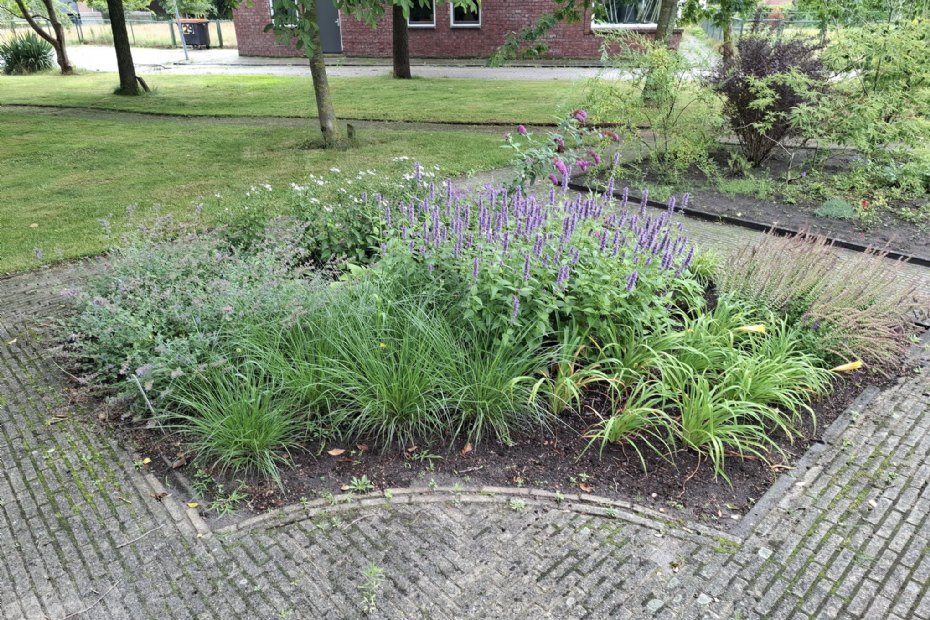 In maart 2025 werd DCM SOIL-ACTIV toegepast bij een praktijkproject op een groenschool in Eelde. Samen met de studenten werd er een plantvak aangelegd met onder meer Salvia nemorosa, Nepeta 'Six Hills Giant' en Agastache 'Blue Fortune'. Een gevarieerde beplanting dus, ideaal om het effect van de bodemverbeteraar goed te kunnen volgen. Bij de aanleg van het DCM-vak werd bij het aanplanten DCM SOIL-ACTIV gebruikt en tijdens het onderhoud DCM ECOR 2. De planten in het controlevak werden aangeplant in de bestaande grond,5 met kunstmest tijdens het onderhoud. Slechts vier weken na het inwerken van DCM SOIL-ACTIV was er al een verschil te zien met het blote oog. De planten in het DCM-vak vertoonden een opvallend snellere groeistart en hadden meer bloemen én een intensere bladgroenkleur. Eens in de vijf à zes weken werd er onderhoud uitgevoerd. Op deze momenten werd de arbeidsintensiteit per veld met elkaar vergeleken. Per plantvak werd de tijd gemeten die nodig was om het veld volledig onkruidvrij te maken. Uit deze metingen blijkt dat investeren in een gezonde bodem niet alleen zorgt voor een veel beter groeiresultaat, maar ook over het hele seizoen een besparing oplevert in onderhoud en dus in kosten. De studenten zagen dat de planten die met DCM SOIL-ACTIV waren aangeplant sneller wortelden, steviger stonden, minder uitval vertoonden én meer bloemen hadden. Op alle controlemomenten was er een ruime aanwezigheid van bijen, hommels en verschillende soorten vlinders. In het controlevak werd helemaal geen biodiversiteit waargenomen. De snellere groei in het DCM-vak wordt toegeschreven aan de toegevoegde schimmels en bacteriën in DCM SOIL-ACTIV, die zorgen voor een actief bodemleven en een versnelde vrijgave van voedingselementen. Deze praktijkproef onderstreept wat DCM al wist: deze bodemverbeteraar werkt snel, betrouwbaar en versterkt het resultaat vanaf dag één. En wat misschien wel het allergrootste voordeel is: je hoeft minder vaak terug. Er zijn minder klachten over slecht groeiende planten, minder herstelwerk en minder twijfel of iets wel 'wil aanslaan'. Met DCM SOIL-ACTIV geef je elke tuin een vliegende start. Precies wat jij wilt, én de klant ook!