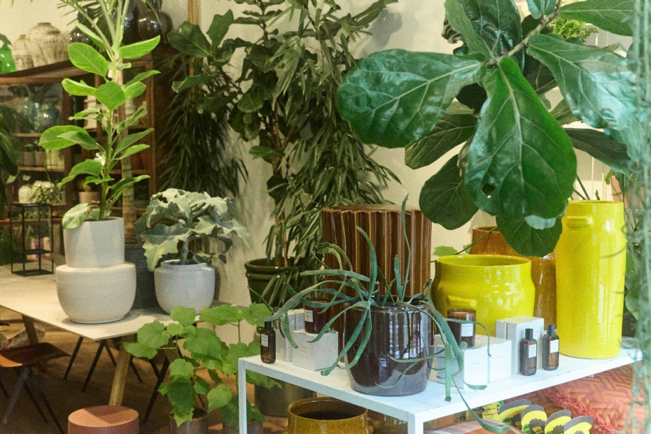 In de winkel, die de uitstraling van een orangerie heeft, met uitsluitend groene planten die staan uitgestald op lange tafels, worden voornamelijk binnenplanten verkocht. 'Binnenplanten zijn het verlengstuk van het interieur. Ze mogen een statement zijn en een interieur ontwrichten. Zeker in de overgestileerde designerhuizen waarin veel mensen tegenwoordig wonen, mag er wat gebeuren,' zegt Van het Meer.