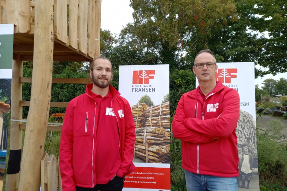 Peter Arts (rechts) van Houthandel Fransen: 'Een erg leuk initiatief, de Nationale Hoveniersdag. De doelgroep sluit goed aan bij ons bedrijf. We doen veel in tuinhout en landschappelijke inrichting. Denk aan speeltoestellen, gevelbekleding en parkmeubilair.'
