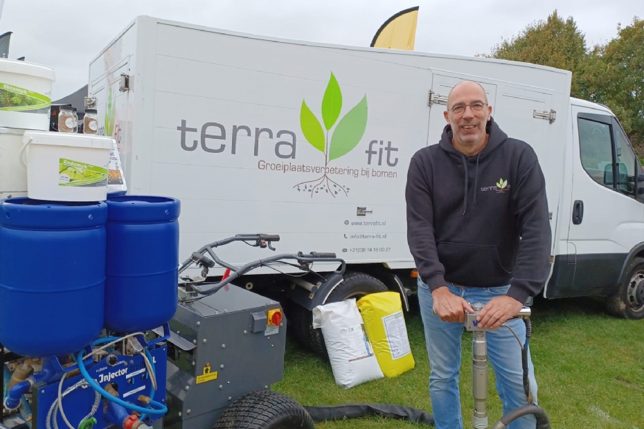 Ivo de Groot van Terra Fit is specialist in groeiplaatsverbetering voor bomen. Om hoveniers nog beter te kunnen ondersteunen gaat zijn nieuwe webshop vanaf eind oktober in de lucht. Daar kunnen hoveniers dan heel eenvoudig op boomsoort zoeken naar de juiste producten om bomen een boost te geven.