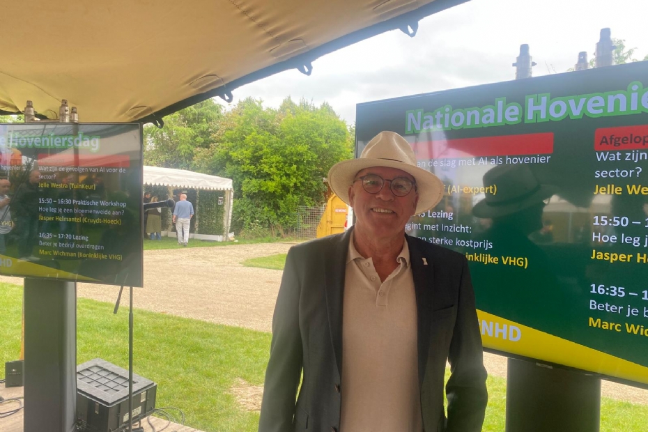 'Dit is een nieuw evenement en we willen voorop lopen op het gebied van tuintrends en daar past deelname aan iets nieuws goed bij,' zegt Peter van den Boogaard van MBI De Steenmeesters over zijn Nationale Hoveniersdag deelname.