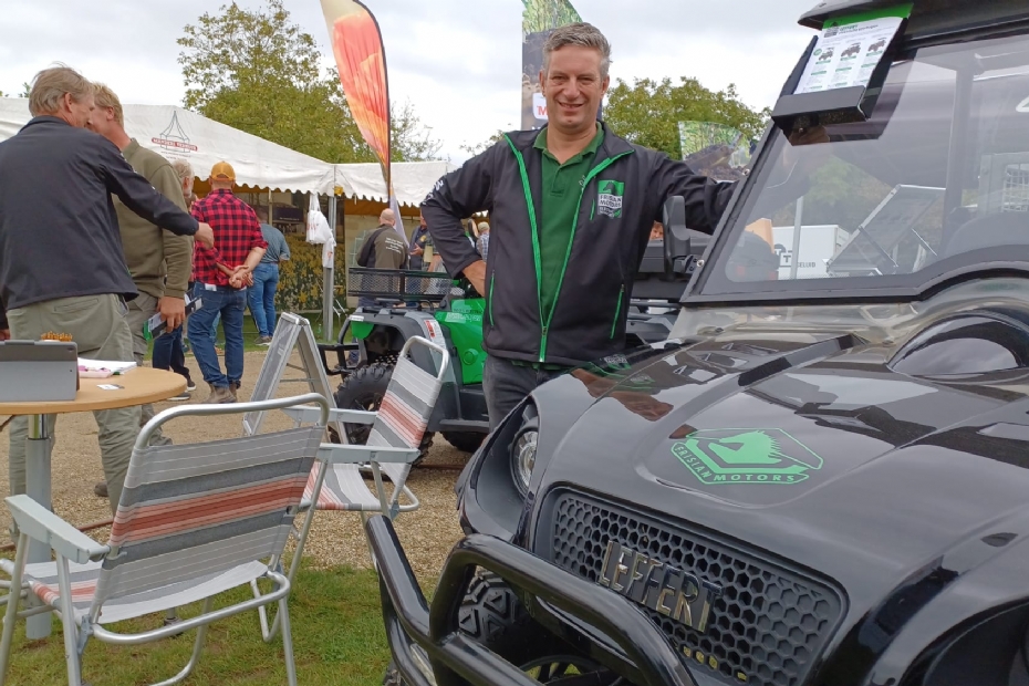 De FM80 en de Volmer quad zijn te zien bij de stand van Frisian Motors. Ze zijn emissievrij en de FM80 kan ook veel (tuin)afval meenemen, vertelt Marco Cornelisse.