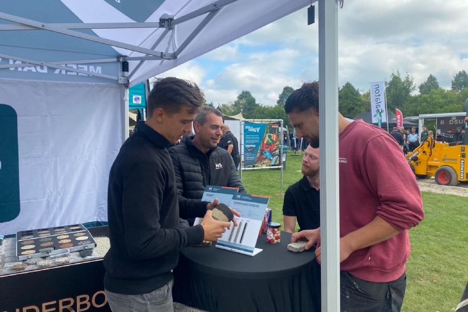 Duurzame bestrating is wat Excluton presenteert op dit event. 'Onze nieuwe innovatie is een nieuwe klimaatadaptieve bestratingslijn. We hebben veel aanloop gehad deze dag', zegt Tynke van den Heuvel. 'Het is belangrijk om in gesprek te gaan met je klanten en bezoekers en dat kan hier', zegt De Jager.