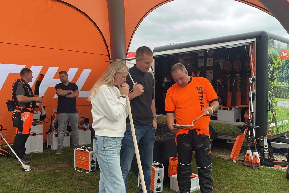 Op de stand van Stihl legt accountmanager Tommy Nagtegaal uit wat de nieuwste ontwikkelingen zijn op het gebied van accumachines. Aankomend jaar bestaat Stihl 100 jaar en komen er weer voldoende nieuwe producten aan.