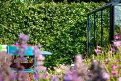 Het team van Schutting Groothandel (Mike van den Biggelaar en Koen Willems) geeft aan een aantal interessante gesprekken te hebben gevoerd deze dag. 'We wilden wel eens kijken of deelname aan de Nationale Hoveniersdag wat zou opleveren. Het valt qua bezoekers absoluut niet tegen. Waarin we ons onderscheiden, is dat we verder gaan dan het leveren van schuttingen. We kunnen deze ook installeren en laten bezorgen. Momenteel kijken we of we partners kunnen vinden die onze schuttingen kunnen installeren. Totaalontzorging bieden is ons doel,' stelt Mike van den Biggelaar.