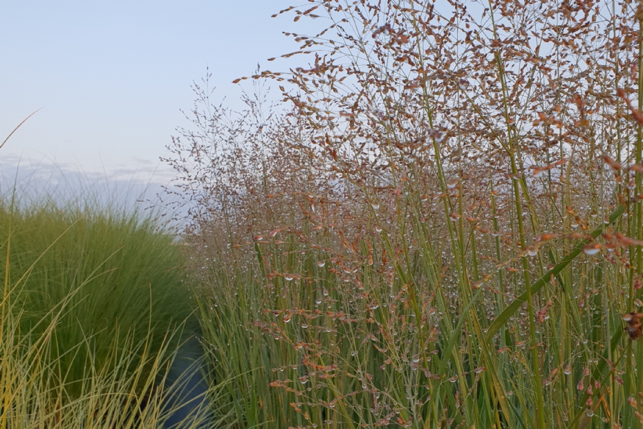 In een ontwerp is het verstandig om met ritme en herhaling te werken. Door enkele soorten in de border te herhalen, creëer je rust en samenhang. Wuivende structuren komen het mooist tot hun recht wanneer ze worden gecombineerd met vaste planten met stevige bloem- of bladvormen, waardoor spanning en contrast ontstaan. Hoogteverschillen geven gelaagdheid en zorgen ervoor dat het ontwerp van voorjaar tot winter boeiend blijft. Rijnbeek: 'De kracht van siergrassen zit in de eenvoud. Kies liever voor enkele sterke soorten en herhaal die dan dat je alle variatie in één border wilt stoppen.'