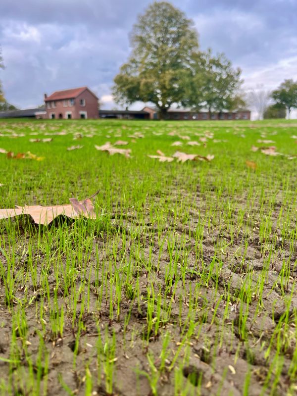 Na het opvegen van het materiaal werd het gazon doorgezaaid met een sport- en siermengsel dat geschikt is voor gazons die representatief moeten blijven maar ook intensief worden gebruikt. 'Binnen een week na het doorzaaien zagen we de eerste nieuwe sprietjes al verschijnen,' vertelt hij.