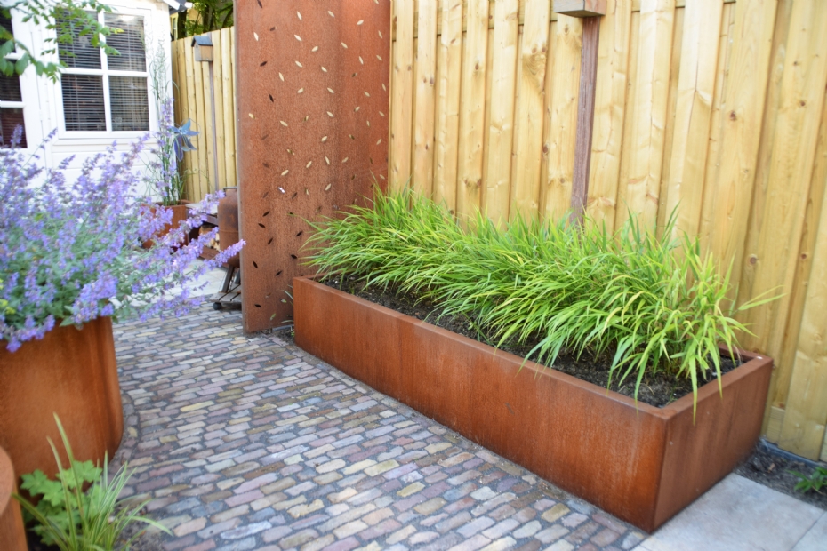 Mocking Hoveniers gebruikt regelmatig cortenstaal in tuinontwerpen