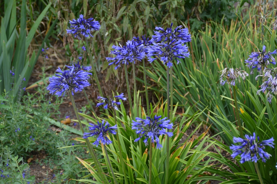Voor de verandering begin ik met het kopje 'Combinaties'. Want zeg nu eerlijk: Agapanthus is een duidelijke en opvallende verschijning in de tuin, maar hoe combineer je deze plant? Natuurlijk kan het op de traditionele manier, door hem mee te nemen als afwijkende ronde bloemvorm op een lange steel die samen met het lange smalle blad een bijdrage levert aan een afwisselend textuur. Maar het kan ook anders. In Nymans Gardens in Engeland zag ik in plaats van een Noord-Amerikaanse prairiegarden een Zuid-Afrikaanse mix van Dianella, Kniphofia, allerlei grassen en andere daar voorkomende planten in combinatie met Agapanthus. De sfeer was verbluffend!