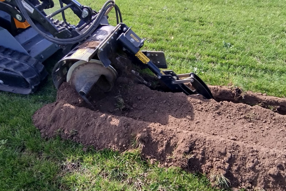 Maar dat laat onverlet dat Van Gammeren de skid steer verkiest boven de minigraver bij dit soort werkzaamheden. 'Ik heb ook een minigraver staan, maar het gras was al ingezaaid en geëgaliseerd. Ga je daarmee aan de slag, dan trek je meer kapot. Met de skid steer ligt er superfijne grond naast de sleuf, die je daarna gewoon weer inschuift, egaliseert en inzaait. Dat vind ik een belangrijk voordeel: minimale bodembeschadiging.'