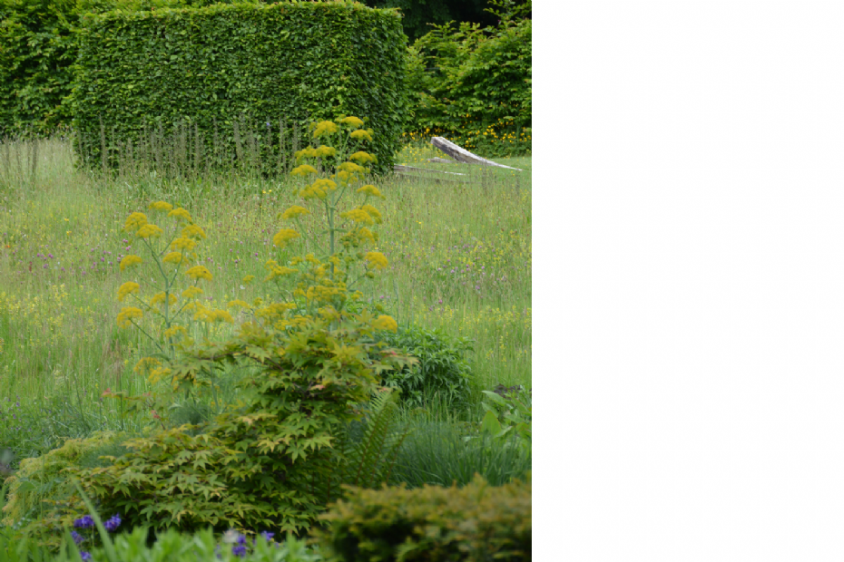 Ferula communis zag ik voor het eerst bij Kwekerij Bastin in Aalbeek. Ik lees op de website dat het een absolute favoriet is. Hij lijkt wel wat op Foeniculum vulgare; de Nederlandse naam is dan ook reuzenvenkel. Waar Foeniculum leuk is om als weefplant te gebruiken, is Ferrula juist indrukwekkend als solitair. Met zijn enorme groengele schermen verdeeld over de bloemsteel is het een stevige verschijning. Maar door de bloemkleur blijft hij subtiel en is hij altijd in een kleurenpalet in te passen. De bloemstelen kunnen wel 2,50 m hoog worden. De grijsgroene waas op de steel is een mooi extraatje. De bloeitijd is in juni-juli, maar ook hier geldt weer dat de uitgebloeide vorm nog lang de moeite waard is. Het blad is ingesneden en glimmend groen. Ondanks zijn mediterrane afkomst is de plant goed winterhard.
