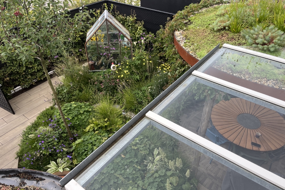 Op zoek naar verrassingen in de tuin treedt Hoogland graag buiten de gebaande paden. Duurzaamheid en biodiversiteit spelen daarbij een natuurlijke rol: kleine wadi's, waterbergingen en halfverhardingen maken zijn tuinen aantrekkelijk voor insecten, vogels en vlinders. 'Ik probeer een tuin altijd uniek in te vullen', zegt hij. 'Betonpalen kunnen dienstdoen als bestrating en hardhouten damwandplanken als verhoging voor de voordeur.' Het zijn juist die onverwachte, creatieve details die zijn tuinen een eigen karakter geven.