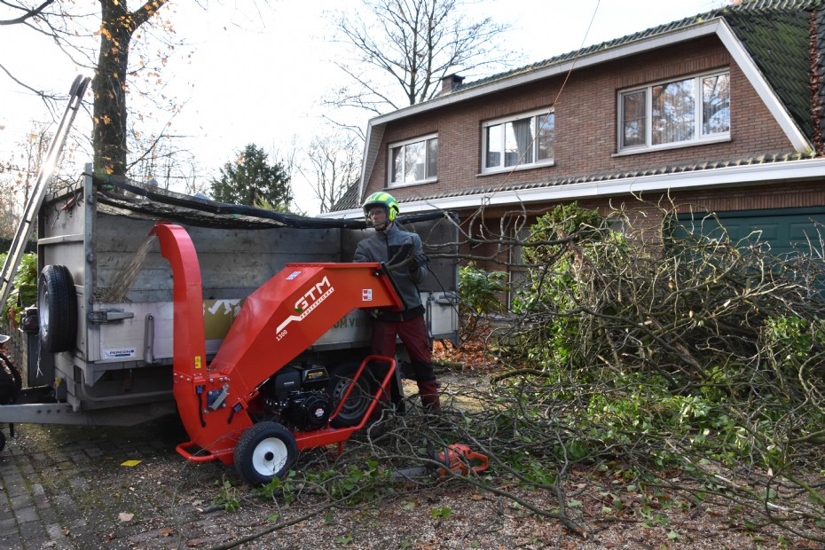 Van Hoofs standaard GTM 1300 versnippert verse takken met een diameter tot 10 centimeter. Deze versnipperaar beschikt over een brede en vaste invoer die ruim 1 m hoog is. Met een breedte van slechts 77 centimeter zijn de machines uit de 1300-serie niet alleen compact, maar ook nog eens smal. Boomverzorger Van Hoof maakte zijn machine zelf nog iets smaller door één wiel circa 4 centimeter naar binnen te verplaatsen. Voorts heeft hij de 270 graden draaibare uitvoer en de invoertrechter voorzien van snelsluitingen, zodat hij ze beide kan afnemen. 'Bij demontage maakt dit mijn machine aanzienlijk korter', verduidelijkt Van Hoof. 'Ik kan de versnipperaar nu zelfs door een huis of een garage naar een achtertuin duwen zonder rommel achter te laten. En na wat laswerk aan de versnipperaar kan ik de machine nu ook in zijn geheel met de snelwisselaar aan mijn Sherpa-miniloader op de aanhangwagen plaatsen. De machine waarmee ik werk, heeft namelijk geen wiel- of rupsaandrijving. Die maakt GTM Professional overigens wel, maar ik heb er geen behoefte aan. Ik vind dit 1300-model ideaal voor een - beginnend - hovenier of boomverzorger, omdat de investering vrij laag is. En als rasechte Brabander maakt het me blij om met zo'n machine uit "ons" Brabant te werken. Mijn miniloader is overigens ook een echt Brabants product. De service op beide machines is eveneens geweldig!'