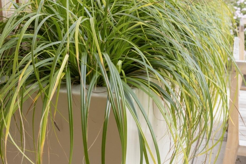De keuze voor de kleur van de plantenbakken was RAL 7032. Het gaat hier om kiezelgrijs wat een ingetogen kleur is die in het zonlicht een zachte, bijna groengrijze tint krijgt. Deze kleur sluit mooi aan op de rest van de materialen in de tuin, zoals het witte grind, de zandkleurige tegels en de lichte schutting.