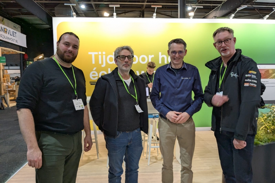 Het team van Moasure (o.a. Mustapha Himi en Sela Hendrix) staat op de beurs om klanten te begroeten. Influencer Joost Kloostra (uiterst rechts) is als ambassadeur van het merk actief. In zijn video's legt hij uit hoe de apparatuur van Moasure werkt. Je vindt zijn filmpjes op Instagram onder Joost in de Tuin.