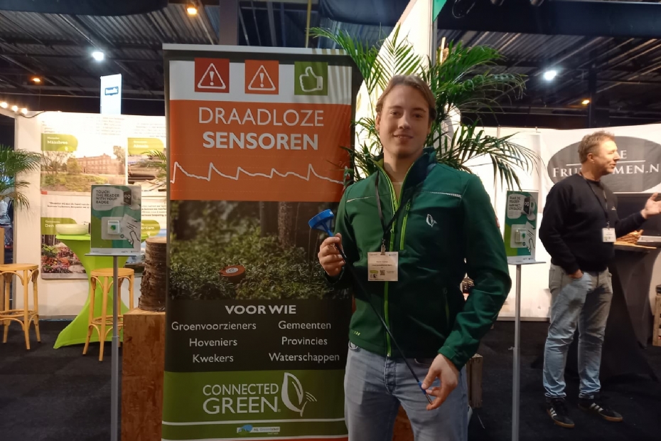 ConnectedGreen, Maurits Krijnsen: 'Iedereen die professioneel met irrigatie bezig is, willen we van de oude manier van werken over laten gaan op onze nieuwe manier van werken. Nu willen we een totaaloplossing bieden. Dus: ondersteuning over waar je de sensoren precies moet plaatsen en hoeveel sensoren heb je nodig. Vervolgens adviseren we bij de installatie van de sensoren en zorgen ervoor dat ze gecalibreerd worden. Daarna uitlezen van de data en hulp bij de stap van data naar praktisch inzicht en geld besparen.