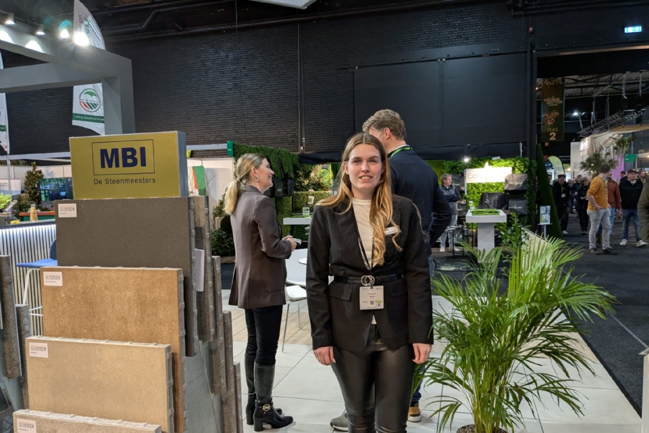 Guusje Kuijpers van MBI De Steenmeesters is in Hardenberg om de nieuwe lijn kasseistenen te presenteren. Deze lijn is vanaf februari-maart verkrijgbaar in een formaat met een dikte van 6 centimeter. Dat is 2 centimeter kleiner dan de huidige versie wat het voegen eenvoudiger maakt. Deze stenen beschikken over een kleurechte granulaten deklaag.