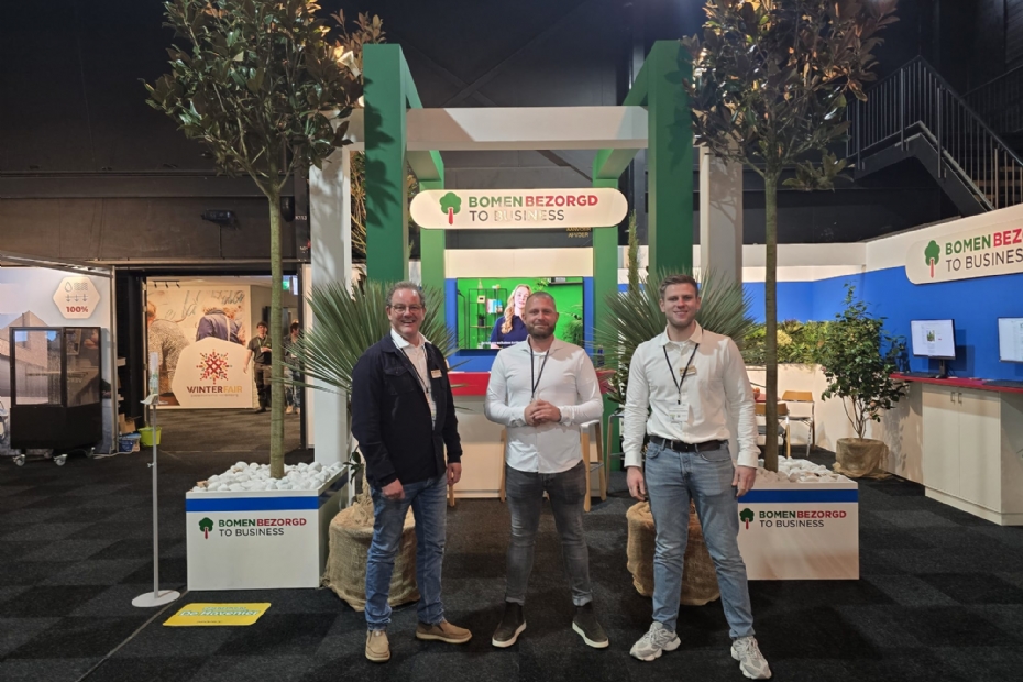 Paul Holdinga, Michel Stuivenberg en Arnoud van Lavieren van Bomen bezorgd to Business. Still going strong met hun succesvolle concept, ze leveren het groene totaal plaatje. Arnoud van Lavieren is de nieuwe account manager, dus loop zeker even langs de stand!