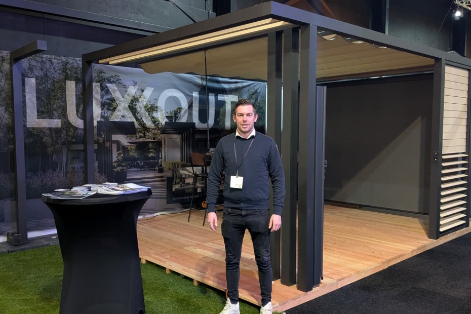 Jos van Leeuwen staat bij LuxxOut op de stand. LuxxOut heeft drie elegante pergola's samengesteld die design en comfort naadloos combineren. Geïnteresseerde hoveniers kunnen bij de dichtstbijzijnde dealer meer informatie inwinnen over alle mogelijkheden.
