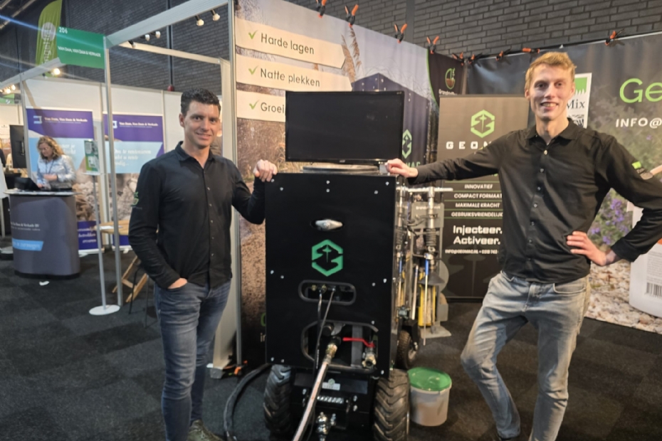 Gerrit van den Herik en Willem Jan van Manen van ProMixhebben een eigen grondplofmachine gebouwd, de Geomac. Om te verkopen en te gebruiken als service om harde lagen te doorbreken en voedingsstoffen te geven aan bomen en grassen. Gebouwd vanuit de praktijk, dus electrisch en smal,zodat het door een poortje past. Introductie op de beurs, want de eerste is net klaar. De innovatie van Hardenberg.
