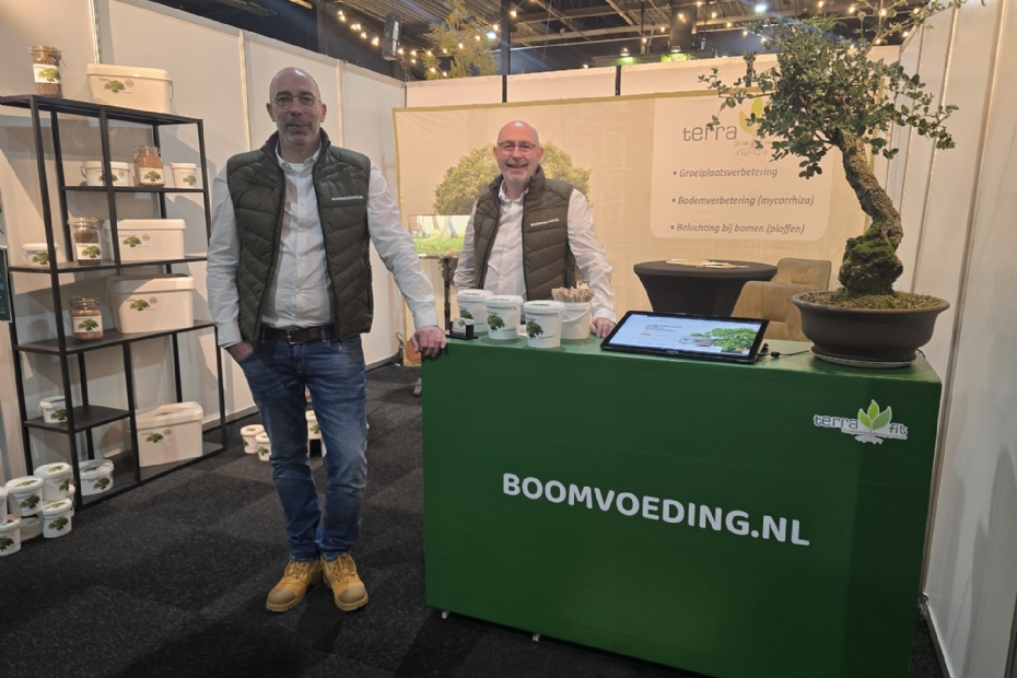 Ivo de Groot en Jos Peters van Moooz Green Solutions, beter bekend van Terra-fit introduceren de nieuwe webshop boomvoeding.nl. Speciaal voor de hoveniers, is de webshop opgezet om te helpen bij het kiezen voor de juiste boomspecifieke voedingsstoffen. In alle volumes te verkrijgen. Te gebruiken in combinatie met mini voedingspijlers of grondplofapparaat.