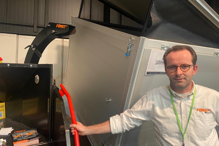 Sebastien Merckx van Firma Thomas heeft de nieuwe Timberwolf TW 280FTR houtversnipperaar meegenomen naar de beurs. 'Het afgelopen jaar was een goed jaar,' vertelt Merckx met een lach. 'En met de Groene Sector Vakbeurs begint 2026 ook al goed.'
