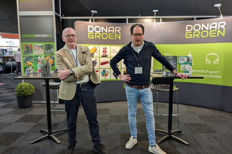 Frans en Ralph van der Hulst van Donar staan op de beurs om bestaande klanten de hand te schudden. 'Ook werken we aan onze naamsbekendheid. Het is een erg leuke beurs en de sfeer is opnieuw erg goed. Fijn om relaties uit het hele land in Hardenberg te zien. Onze nieuwe brochures vinden gretig aftrek dus wij hebben een goede beurs', zegt Ralph.