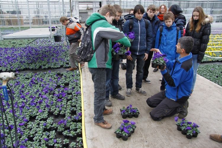 Zo'n 120 leerlingen van de AOC Oost trokken vrijdag 1 maart in de regio Apeldoorn/Deventer in groepjes van 20 langs vijf 'groene' bedrijven. De dag - Tour de Groen 2013 - stond geheel in teken van kennismaking met de groene sector. Op de deelnemende bedrijven - Boomkwekerij Haarman, Ten Kate Flowers & Decorations, Tuinland, Schoneveld Breeding en Bloemenkwekerij Polman - kregen de leerlingen tekst en uitleg over wat er allemaal op de verschillende bedrijven gebeurt. Bovendien konden de leerlingen ook zelf de handen uit de mouwen steken. Op enkele locaties waren ook presentaties van andere bedrijven, zoals handelskwekerij De Buurte en toeleverancier Horticoop. Klik op onderstaande foto's voor een sfeerimpressie van Tour de Groen 2013.