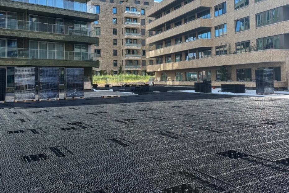Duurzame buitenruimte Joosten Ecodak was al in de ontwerpfase betrokken. In een vroeg stadium is samen met Groenfra gekeken naar oplossingen voor de inrichting van de binnentuin. Doel was een duurzame, groene buitenruimte in een dicht stedelijk gebied.