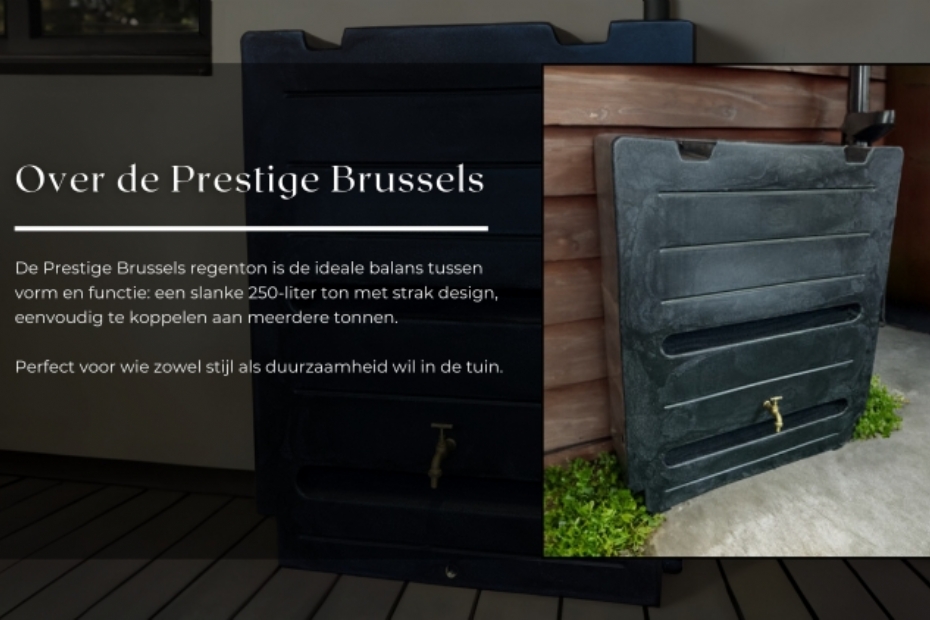 De manier waarop regenwater wordt opgevangen en hergebruikt, krijgt steeds meer aandacht. Daarbij speelt niet alleen functionaliteit een rol, maar ook de inpassing in tuin en leefomgeving. De Prestige Brussels is een regenton die inzet op beide aspecten: waterberging en vormgeving.