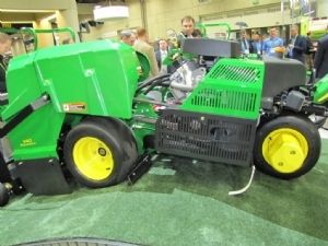 Als eerste een serie van twee handbeluchters, de zogenaamde Precision series. Deze A40 en V40 beloven door de vrij pendelende beluchtingseenheid een constante werkdiepte en perfect ronde gaten ook op de meest geonduleerde greens. De A40 is de standaard machine, de V40 combineert de beluchter met een verticuteermachine er gelijk achter. Op de Golf Industry Show toonde John Deere ook haar nieuwe platforms voor fairways en roughmaaiers en Stage IIIB dieselmotoren voor deze modellen. Het nieuwe platform biedt door de elektronische aansturing van hydraulische systemen diverse instelmogelijkheden voor greenkeepers om de machine op de omstandigheden aan te passen. Technieken die we ook op John Deere's tractoren tegenkomen worden hiermee vertaald naar maaimachines.