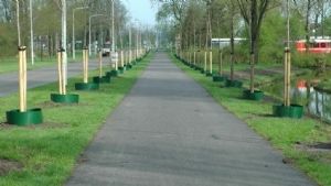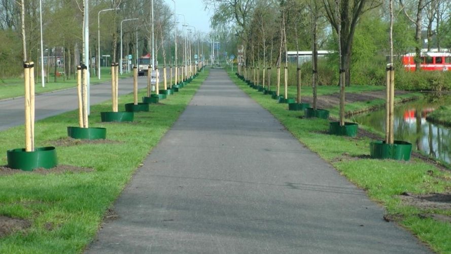De gietranden van Rootbarrier zijn voorzien van een connector, grondanker en een afdekkapje. Dit maakt de gehele constructie zeer solide. Het materiaal HDPE is tien jaar lang UV bestendig en daarmee gaan deze gietranden meerdere cycli mee. Na twee jaar worden de gietranden bij deze bomen verwijderd en kunnen opnieuw gebruikt worden. Op de gemeentewerf werden de gietranden alvast aan één zijde in elkaar gezet, zodat ze op locatie alleen nog maar geschroefd moeten worden. De 85 gietranden zijn uiteindelijk snel geplaatst en netjes afgewerkt. Het project is naar volle tevredenheid afgerond.